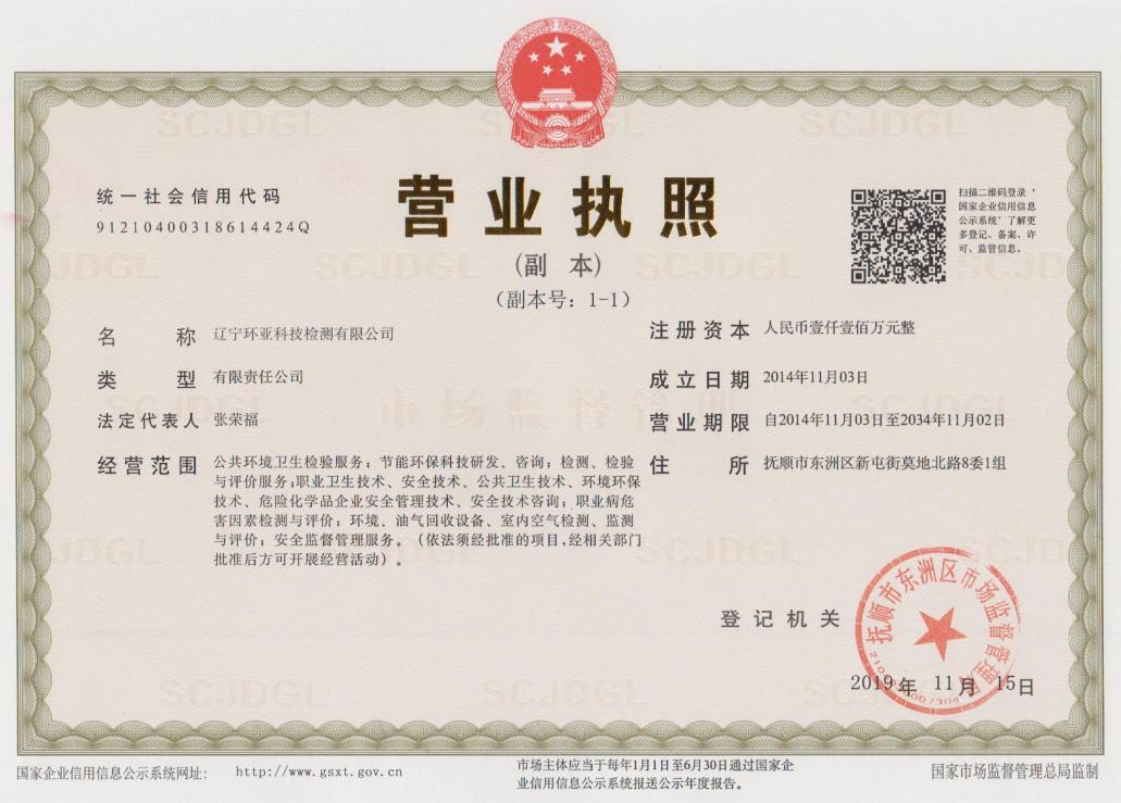 遼寧環(huán)亞科技檢測有限公司秉承“公平、公正、客觀、真實”的服務(wù)理念,力求為遼寧省各企事業(yè)等用人單位提供更優(yōu)質(zhì)的服務(wù),公司領(lǐng)導率領(lǐng)全體員工歷時一年零八個月的時間操練各項基本技能,于2016年8月9日取得了(遼)安職技字(2016)第B-0019號《職業(yè)衛(wèi)生技術(shù)服務(wù)機構(gòu)資質(zhì)證書》