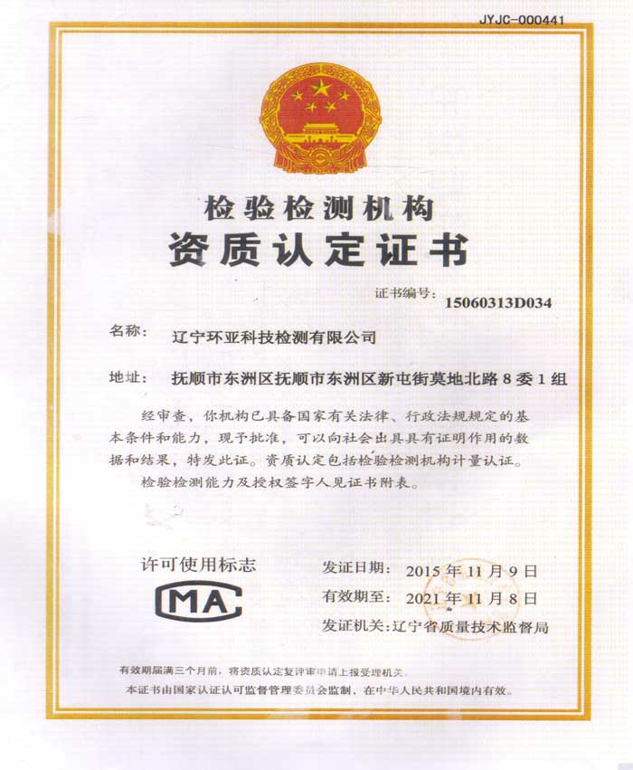 檢驗檢測機構(gòu)資質(zhì)認定證書